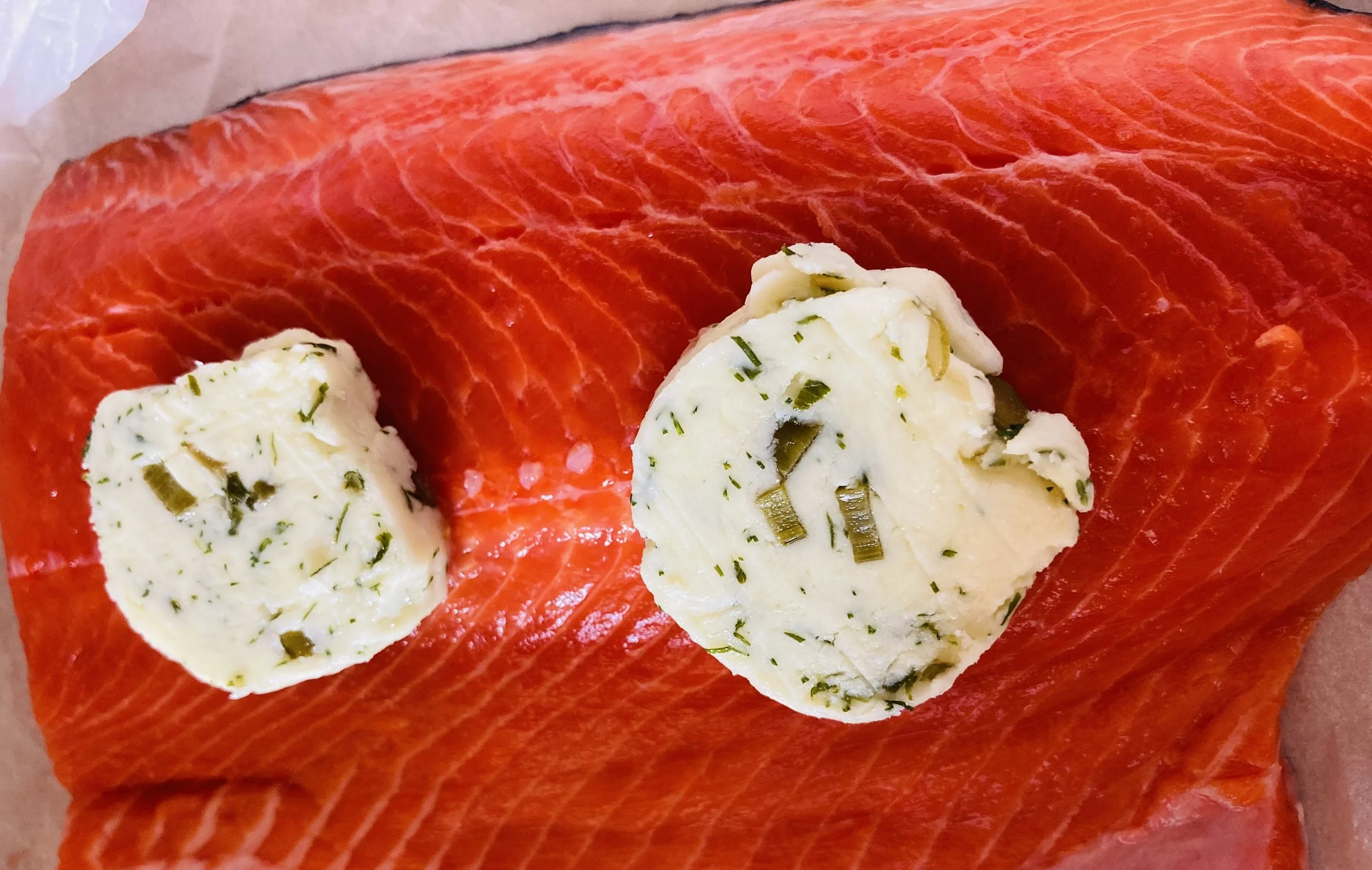 Top salmon or fish of choice with garlic scape butter, wrap in parchment and roast - simple & delicious!